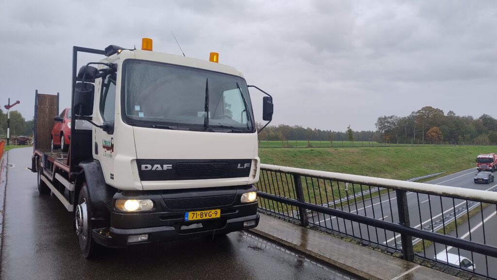 Met behulp van een lier kan een defect voertuig op de vrachtwagen geladen worden. In principe alles wat rolt of met een heftruck geladen kan worden.
